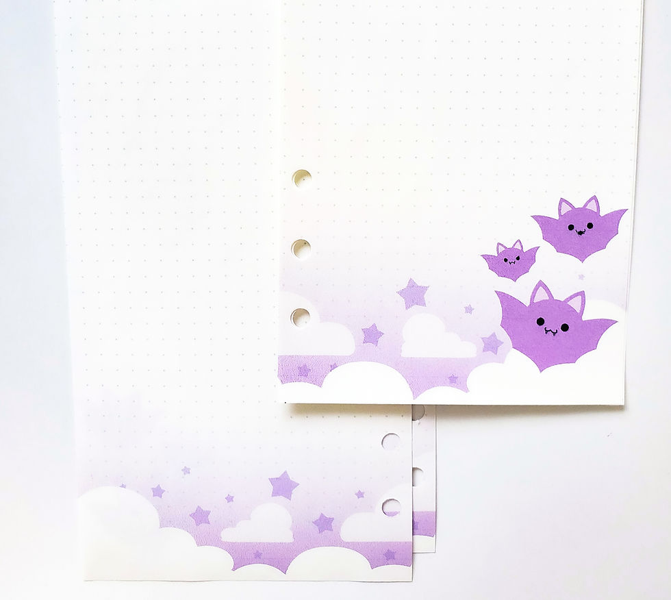 Pastel Goth Kawaii Bat Dot Grid Planner Inserts | Personal Size Purple Inserts