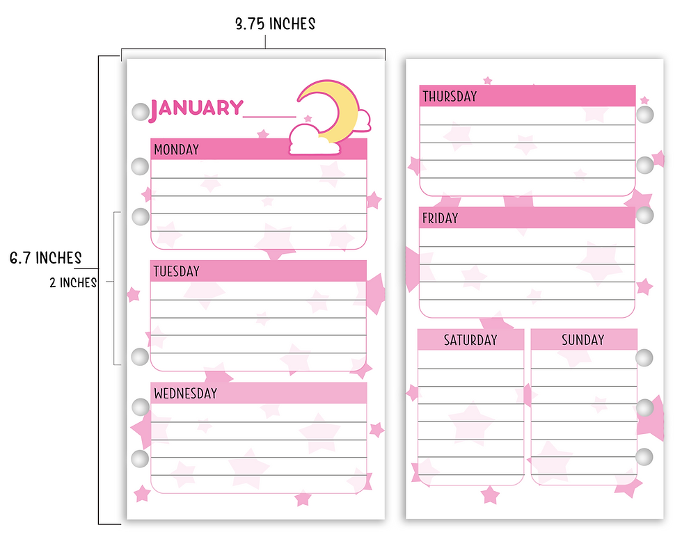 Moon and Stars Personal Size Planner Inserts | Weekly Planner Pages